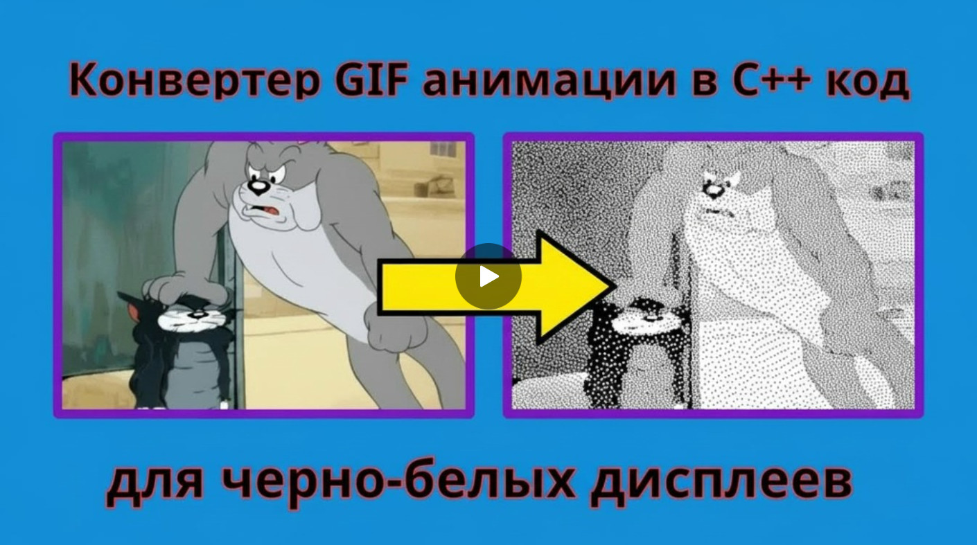 Наконец-то я написал полноценный онлайн‑конвертер GIF анимаций для черно-белых дисплеев, который позволяет всего за несколько кликов превратить обычную GIF‑ку в готовый заголовочный файл C/C++. Никаких сложных программ и ручной обработки — всё делается прямо в браузере.